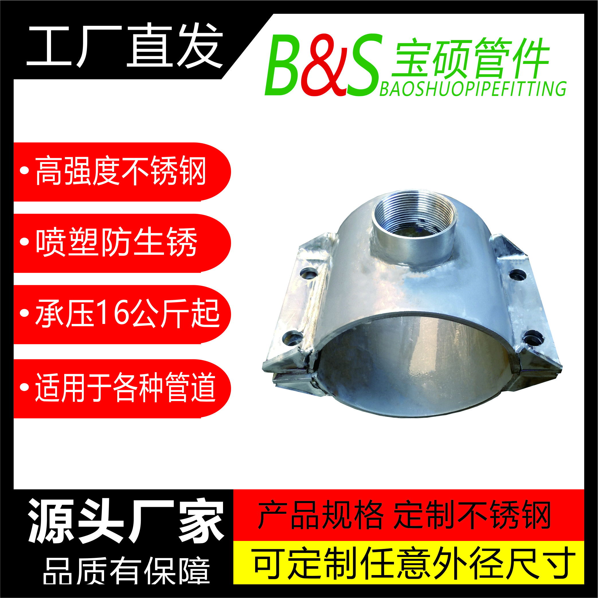常州市宝硕管件有限公司【常州市宝硕宏图管道配件有限公司】是生产各种管道哈夫节,三通哈夫节,弯头哈夫节,异径等管件哈夫节;高压哈夫节,耐油哈夫节,耐高温哈夫节,耐腐蚀哈夫节,碳钢哈夫节,304.316.316L不锈钢哈夫节。马鞍三通管卡,四通管卡;哈夫三通管卡,四通管卡;承插钢塑管件;柔性快速接口.........
